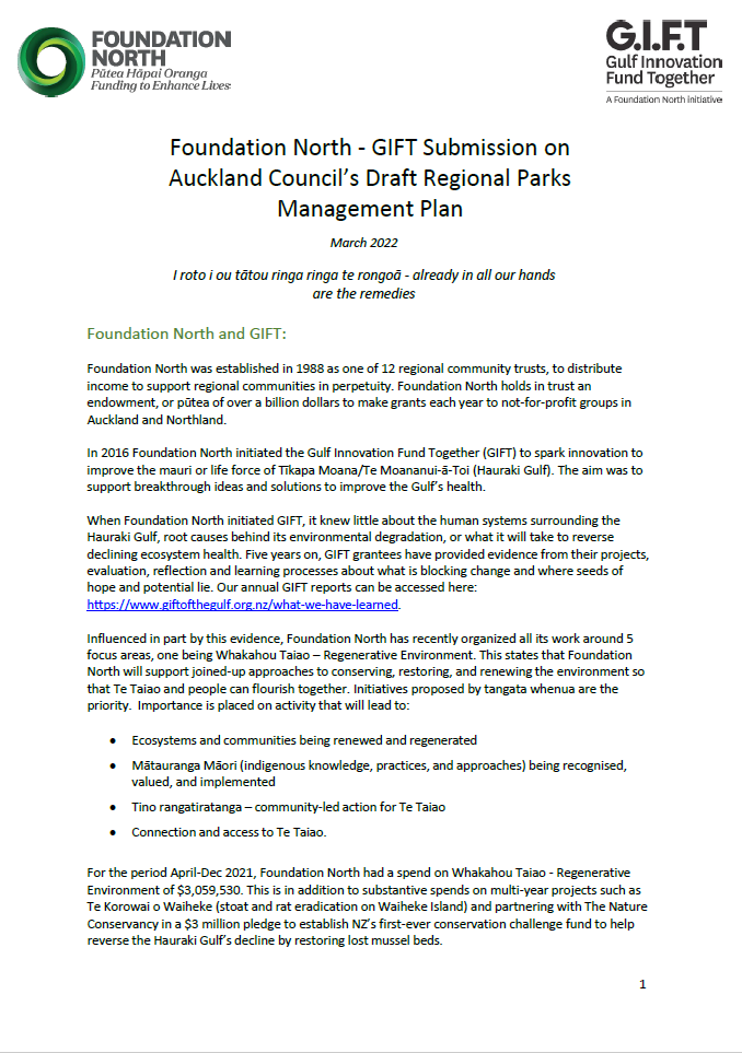 Submission on Auckland Council’s Draft Regional Parks Management Plan